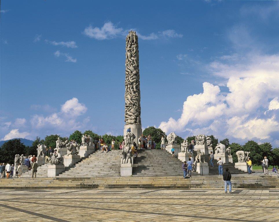 - dan, 29.7., petek: OSLO: Po zajtrku vožnja do parka umetnika Vigelanda, kjer bomo ob njegovih 250 kipih razmišljali o lepoti in minljivosti življenja. Nato sprehod po strogem središču mesta: videli bomo parlament, vstopili v znamenito mestno hišo in stolnico ter si ogledali zanimive zbirke Narodne galerije. Nekaj prostega časa za individualno uživanje utripa mesta, nato vožnja na Holmenkollen, ogled skakalnice z prelepim pogledom na Oslo. Nočitev.